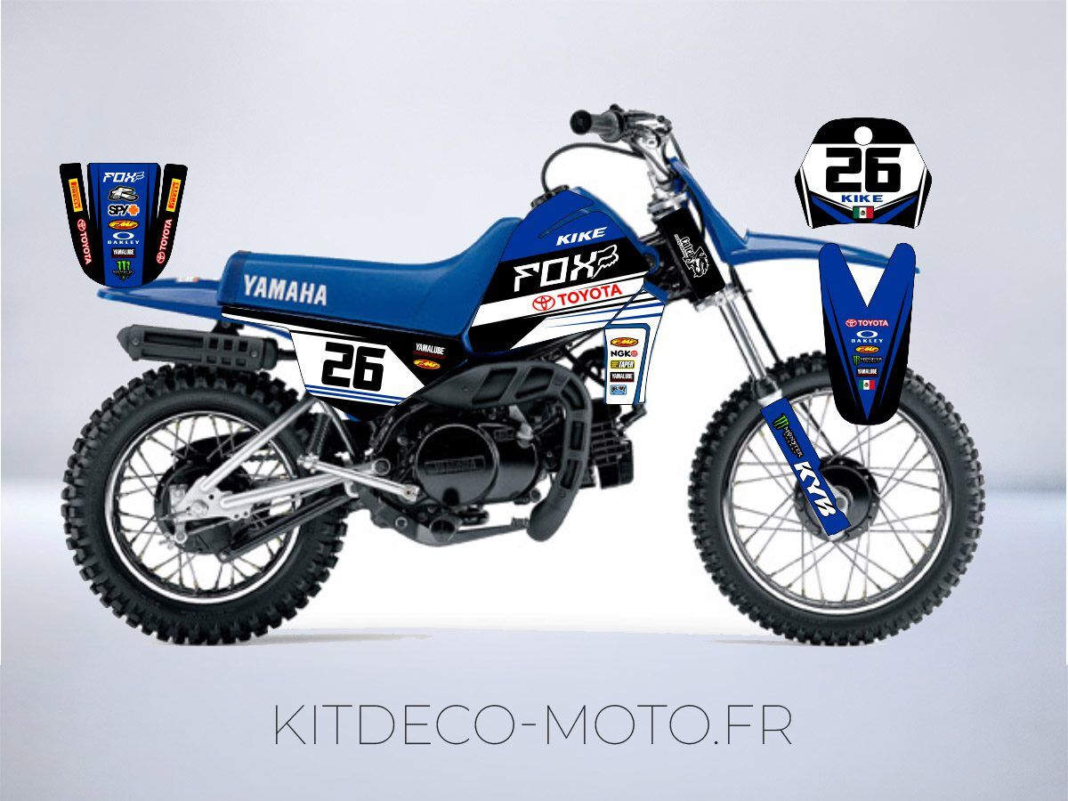 Avec le Kit déco Yamaha PIWI 80 (PW) – Fox, votre moto devient unique et vous aussi. Alors qu’attendez-vous pour donner du style à votre moto ? 🏍️
