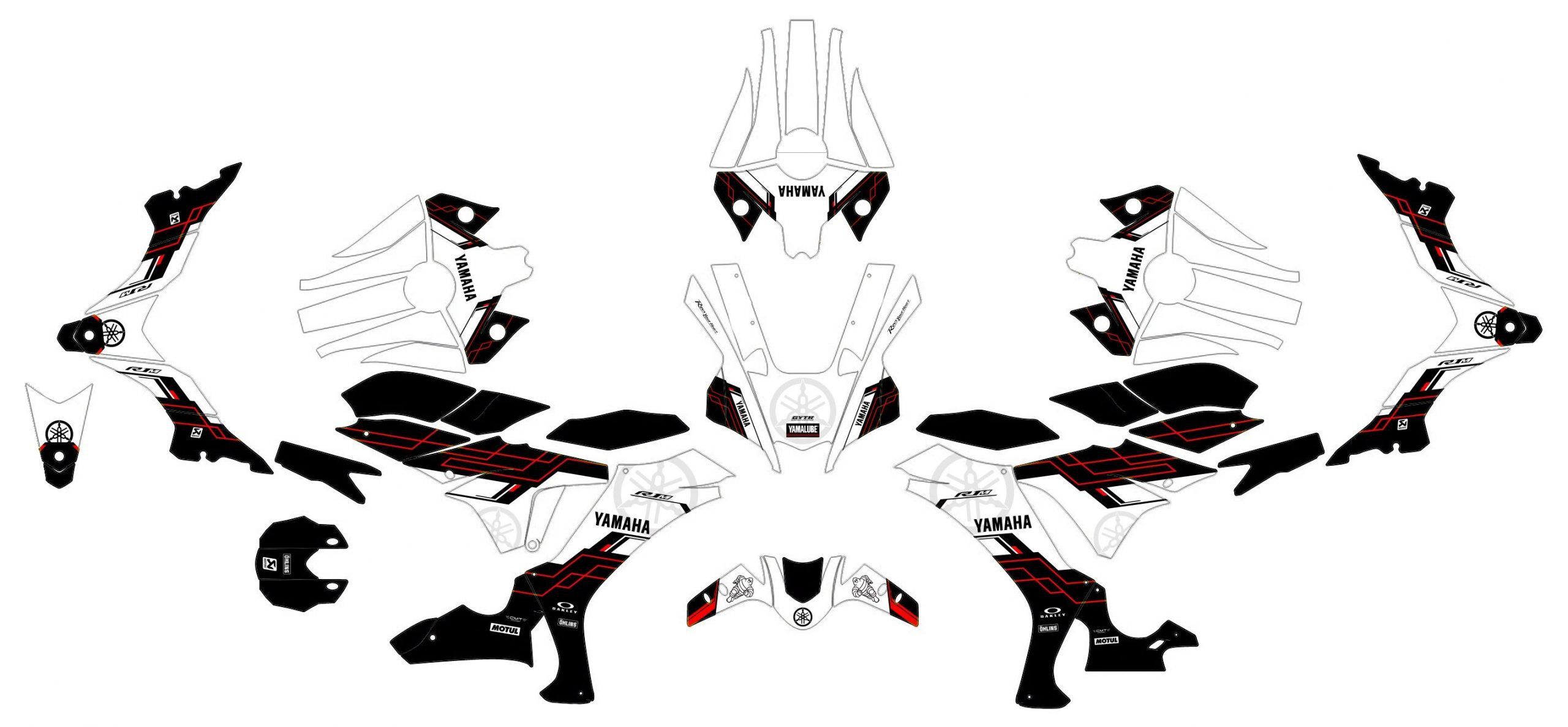 Pour une personnalisation encore plus poussée, vous pouvez customiser votre Kit déco Yamaha R1 – Quadri Rouge avec nos différentes options comme la base du Kit déco, la finition et pourquoi pas ajouter votre pseudo ou bien changer le numéro.