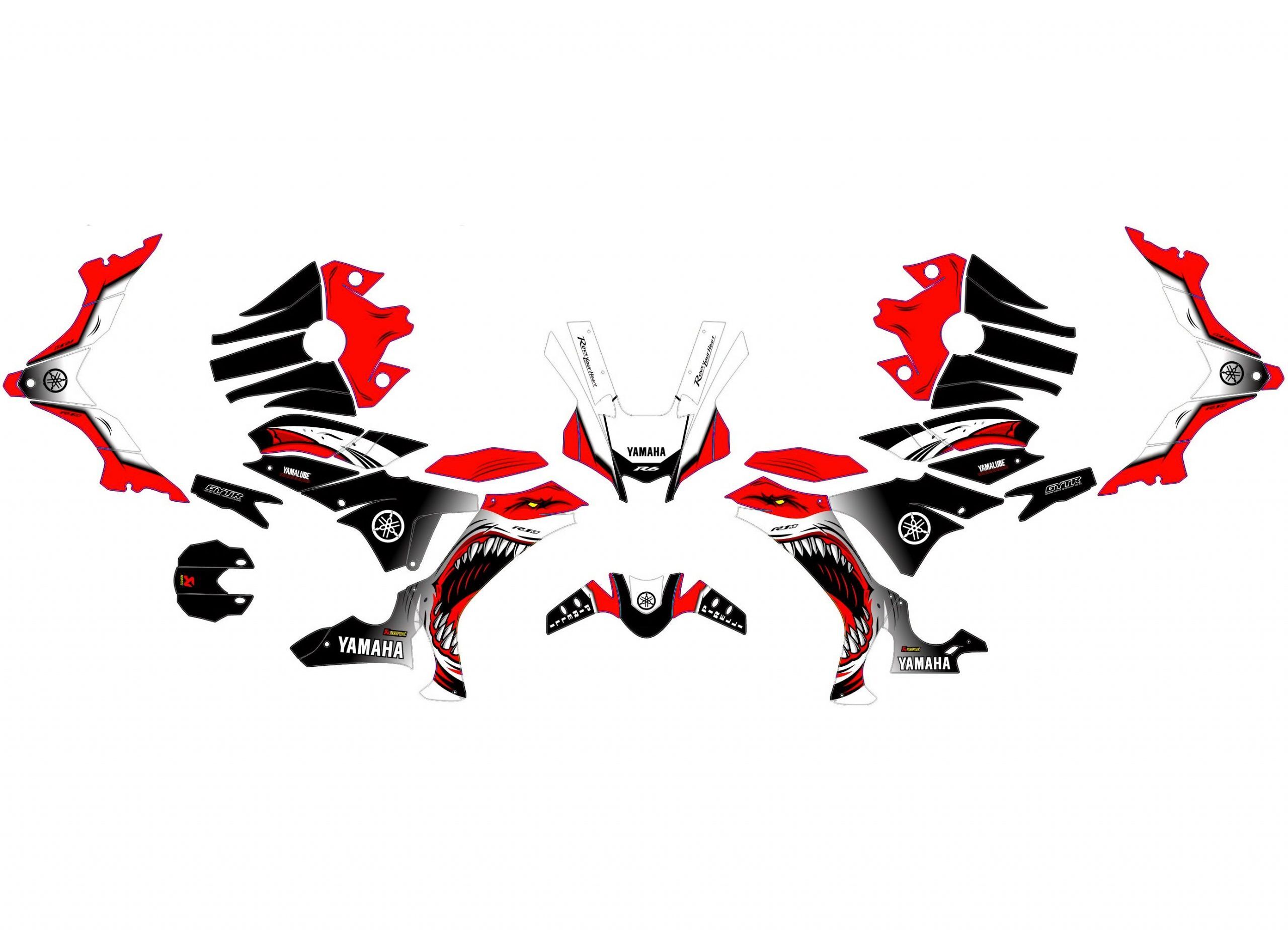 Pour une personnalisation encore plus poussée, vous pouvez customiser votre Kit déco Yamaha R1 – Requin Rouge avec nos différentes options comme la base du Kit déco, la finition et pourquoi pas ajouter votre pseudo ou bien changer le numéro.
