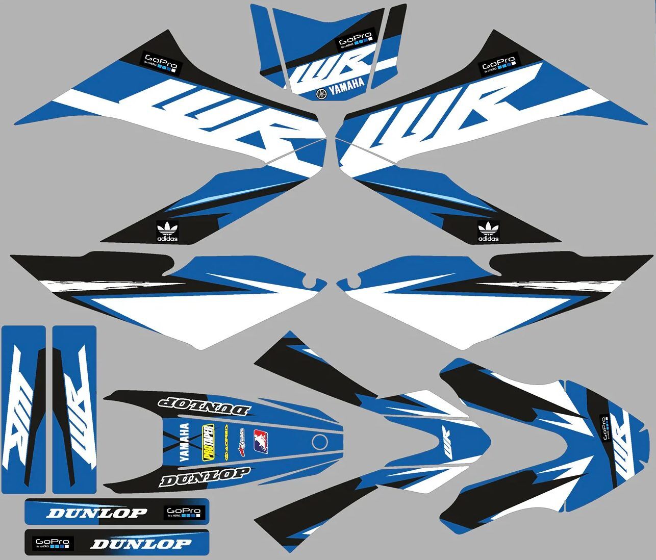 Kitdeco-moto.fr vous propose le kit déco Yamaha Bleu et blanc compatible pour 125 WRX et WRR !