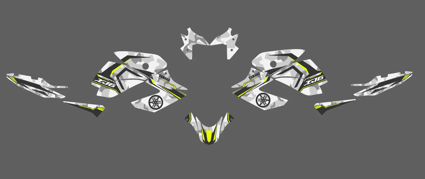 Pour une personnalisation encore plus poussée, vous pouvez customiser votre Kit déco Yamaha XJ6 – Camo Jaune avec nos différentes options comme la base du Kit déco, la finition et pourquoi pas ajouter votre pseudo ou bien changer le numéro.