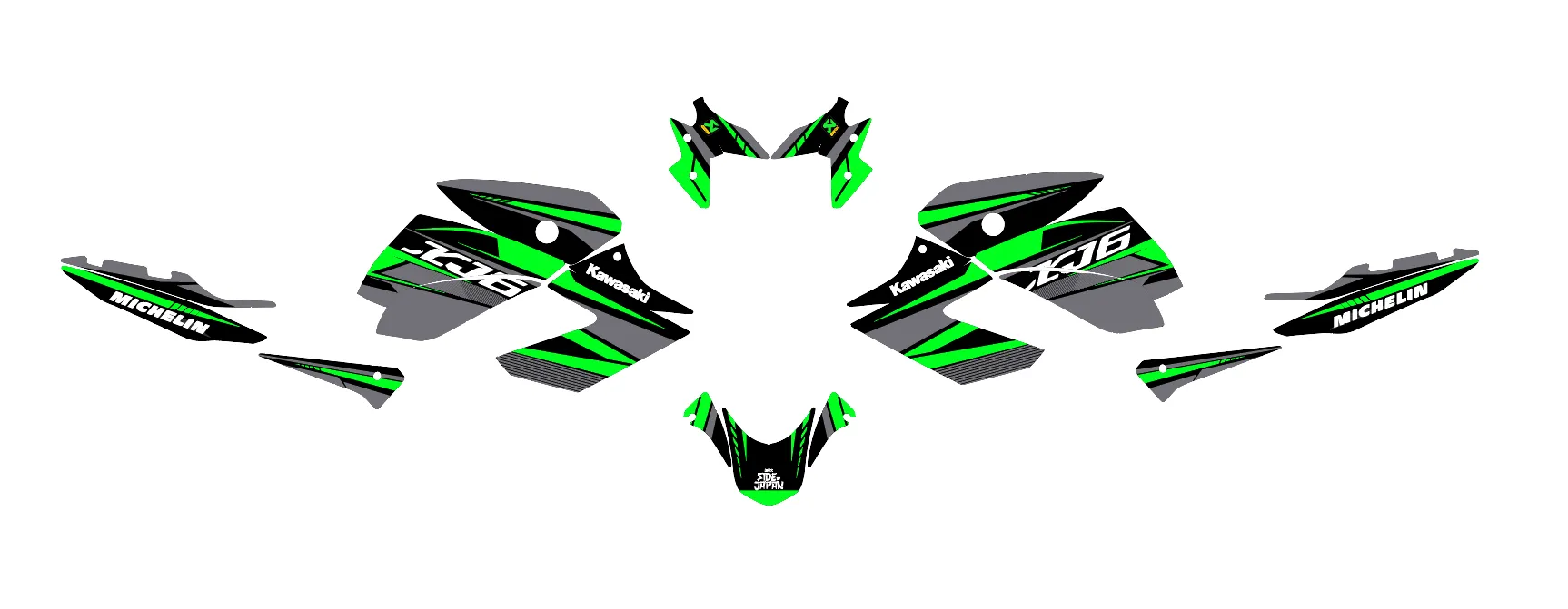 Pour une personnalisation encore plus poussée, vous pouvez customiser votre Kit déco Yamaha XJ6 – Factory Vert avec nos différentes options comme la base du Kit déco, la finition et pourquoi pas ajouter votre pseudo ou bien changer le numéro.