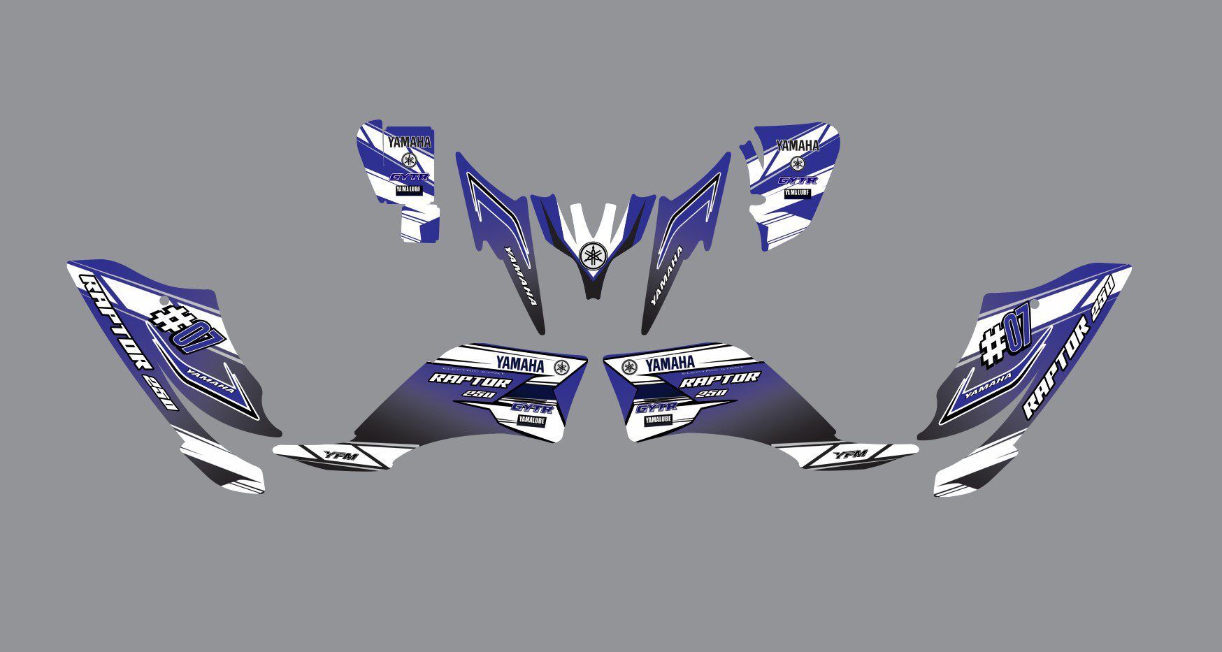 Kitdeco-moto.fr vous propose ce kit déco compatible pour 250 YFM Yamaha Raptor !