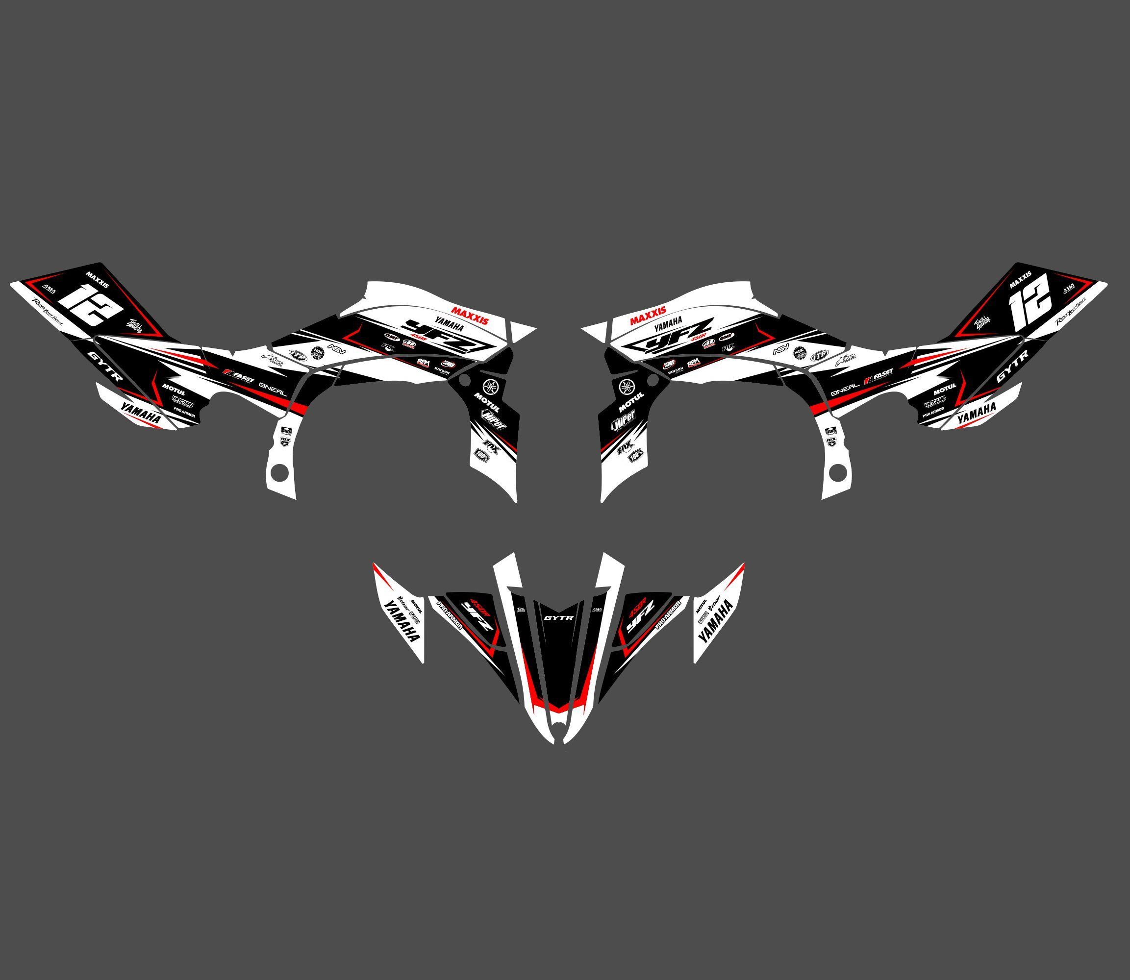 Pour une personnalisation encore plus poussée, vous pouvez customiser votre Kit déco Yamaha YFM 450 YFZ – Airon Rouge #2 avec nos différentes options comme la base du Kit déco, la finition et pourquoi pas ajouter votre pseudo ou bien changer le numéro.