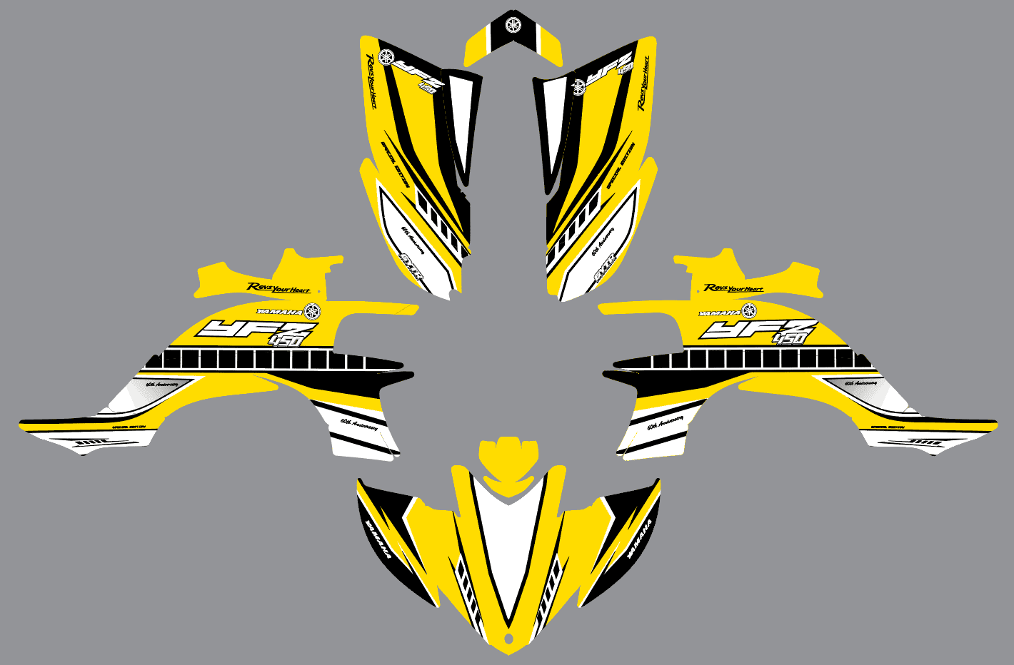 Pour une personnalisation encore plus poussée, vous pouvez customiser votre Kit déco Yamaha YFM 450 YFZ – Anniversaire Jaune avec nos différentes options comme la base du Kit déco, la finition et pourquoi pas ajouter votre pseudo ou bien changer le numéro.
