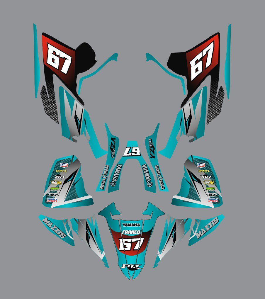 Avec le Kit déco Yamaha YFM 450 YFZ – Factory Cyan, votre quad devient unique et vous aussi. Alors qu’attendez-vous pour donner du style à votre quad ?️