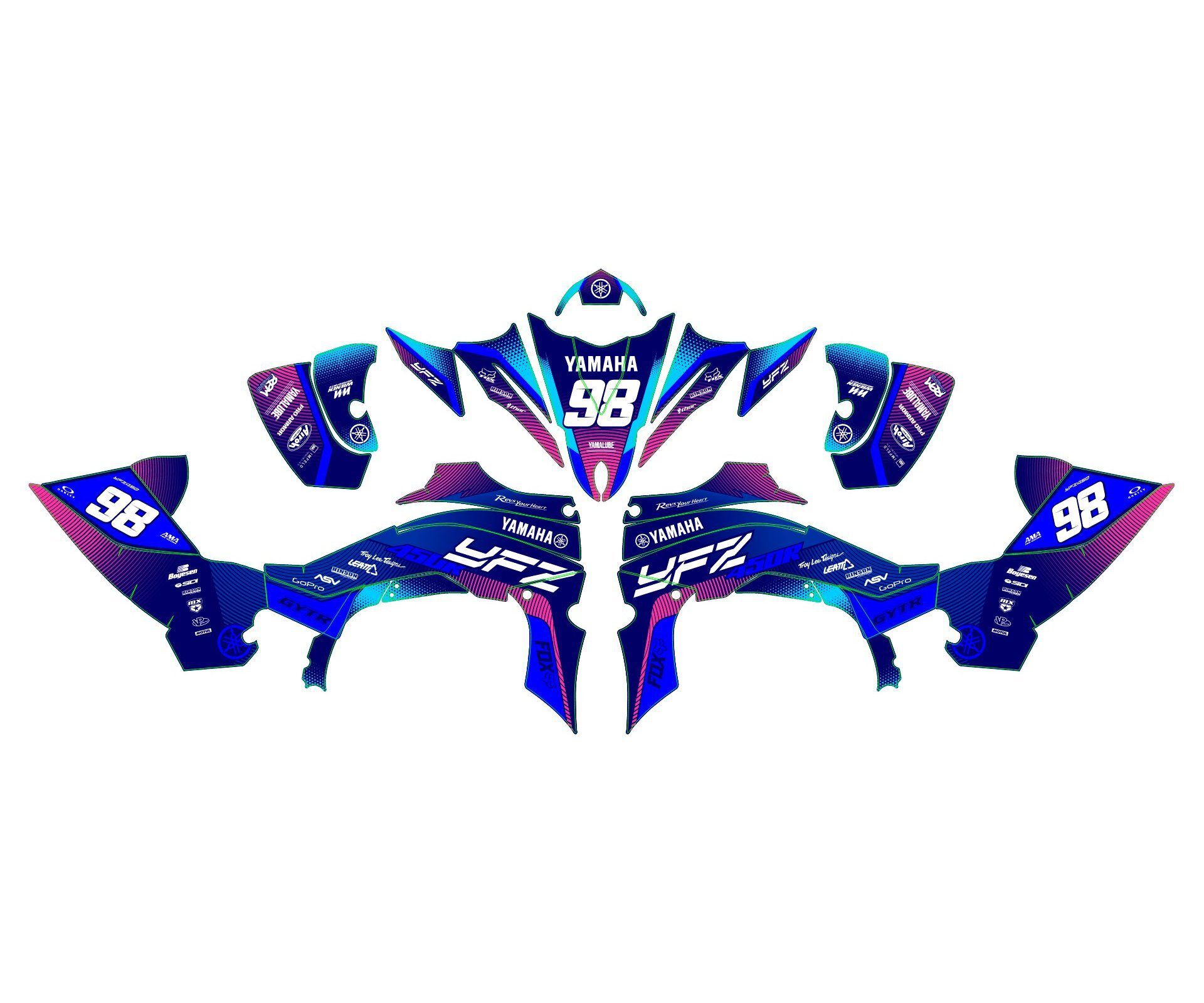 Avec le Kit déco Yamaha YFM 450 YFZ – Neon, votre quad devient unique et vous aussi. Alors qu’attendez-vous pour donner du style à votre quad ?️