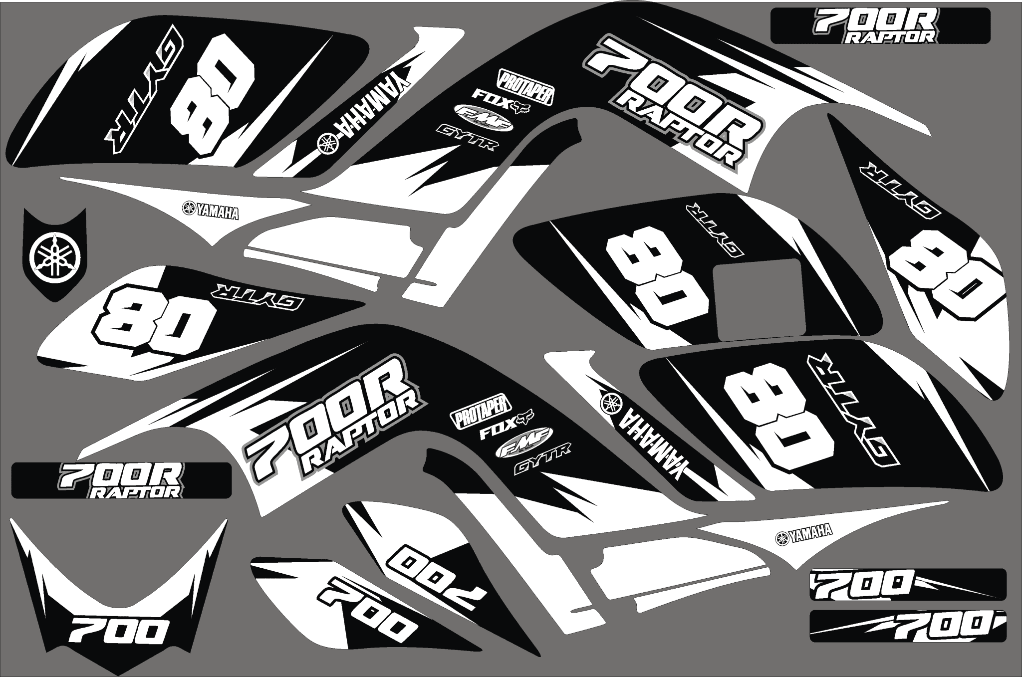Kitdeco-moto.fr vous propose ce kit déco compatible pour 700 YFM Yamaha Raptor !