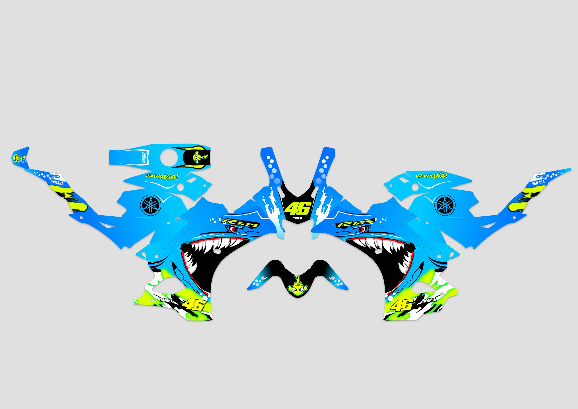 Pour une personnalisation encore plus poussée, vous pouvez customiser votre Kit déco Yamaha YZF R-125 – Shark avec nos différentes options comme la base du Kit déco, la finition et pourquoi pas ajouter votre pseudo ou bien changer le numéro.