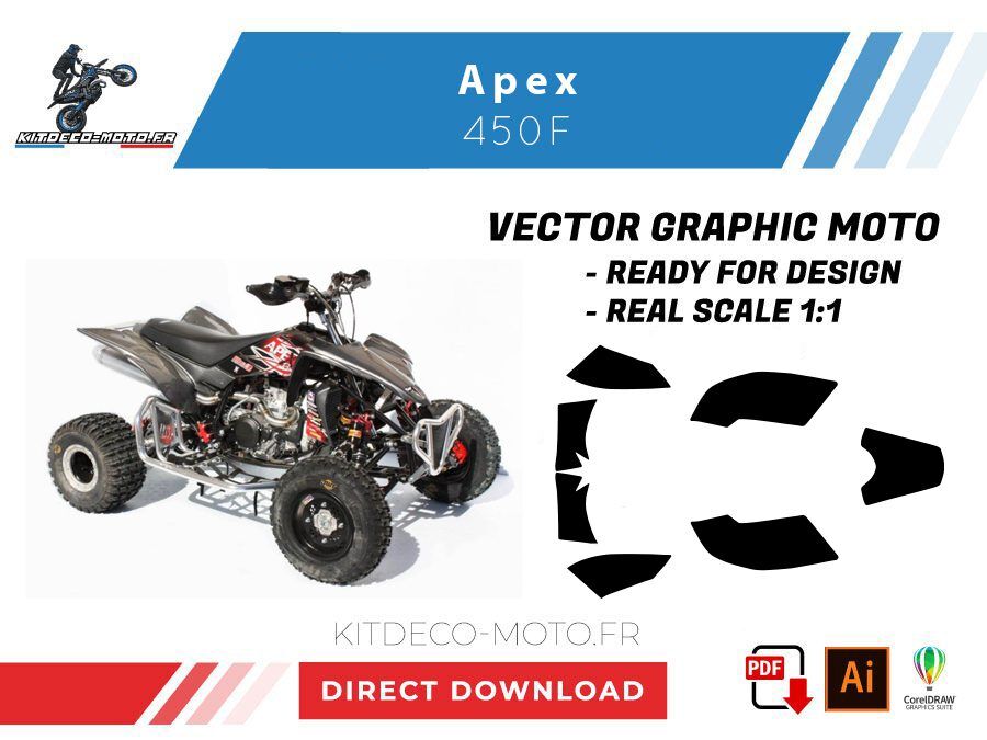 Kitdeco-moto propose le gabarit vectoriel de Apex 450F. Le fichier est téléchargeable après votre achat directement sur votre compte. Le modèle est mis à l’échelle et il est prêt à être utilisé.