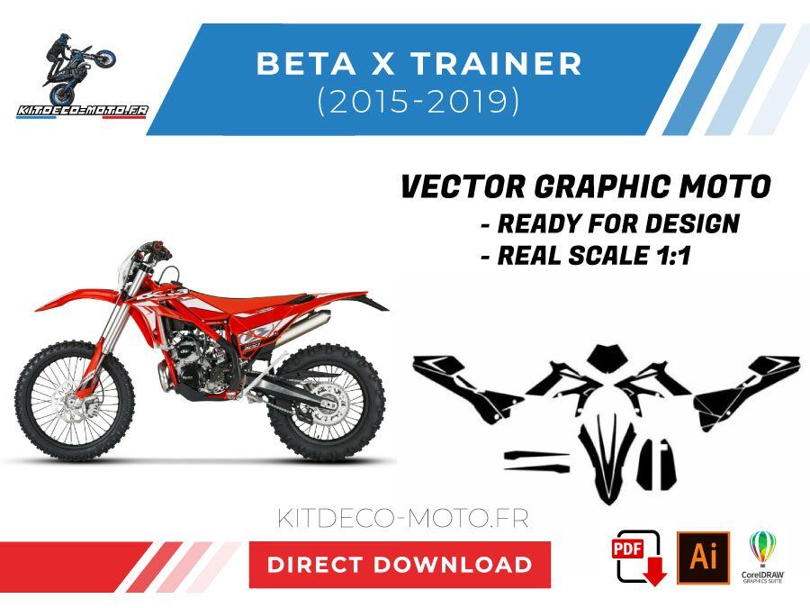 Kitdeco-moto propose le gabarit vectoriel de Beta X Trainer de 2015, 2016, 2017, 2018 et 2019. Le fichier est téléchargeable après votre achat directement sur votre compte. Le modèle est mis à l’échelle et il est prêt à être utilisé.