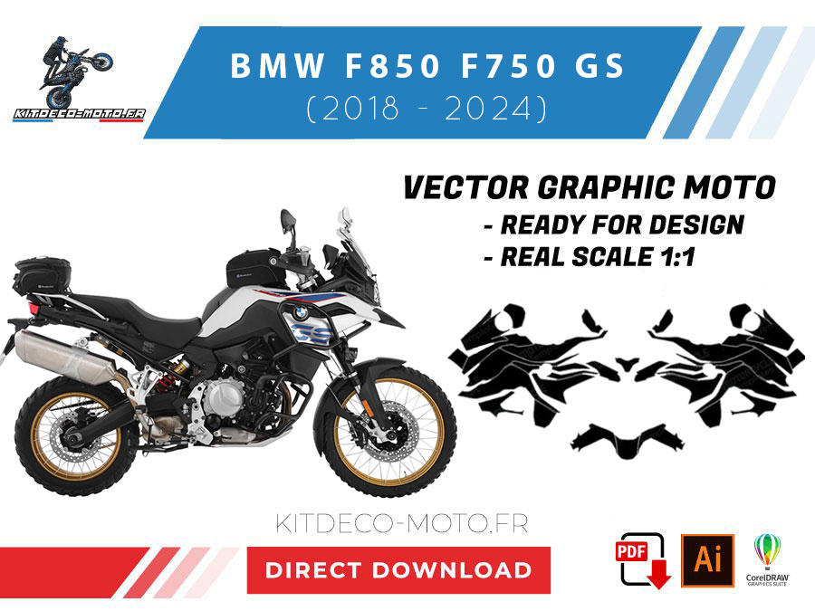 Kitdeco-moto propose le gabarit vectoriel de BMW F850 F750 GS de 2018 à 2024 . Le fichier est téléchargeable après votre achat directement sur votre compte. Le modèle est mis à l’échelle et il est prêt à être utilisé.