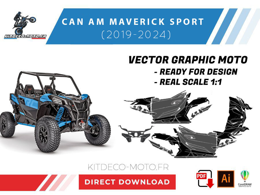 Kitdeco-moto propose le gabarit vectoriel de CAN AM MAVERICK SPORT de 2019 à 2024. Le fichier est téléchargeable après votre achat directement sur votre compte. Le modèle est mis à l’échelle et il est prêt à être utilisé.