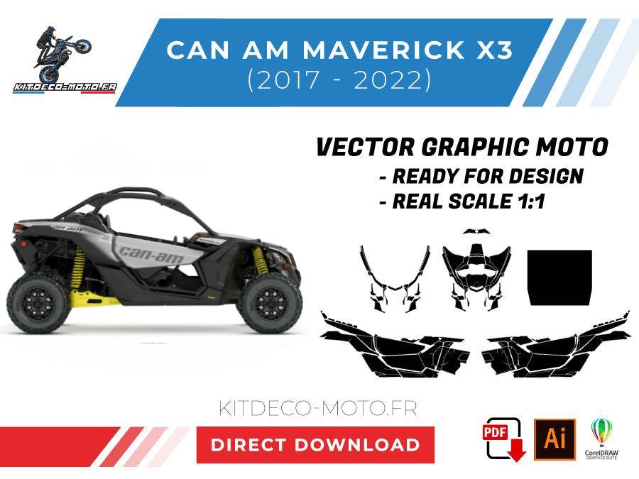 Kitdeco-moto propose le gabarit vectoriel de CAN AM Maverick X3 de 2017, 2018, 2019, 2020, 2021 et 2022. Le fichier est téléchargeable après votre achat directement sur votre compte. Le modèle est mis à l’échelle et il est prêt à être utilisé.