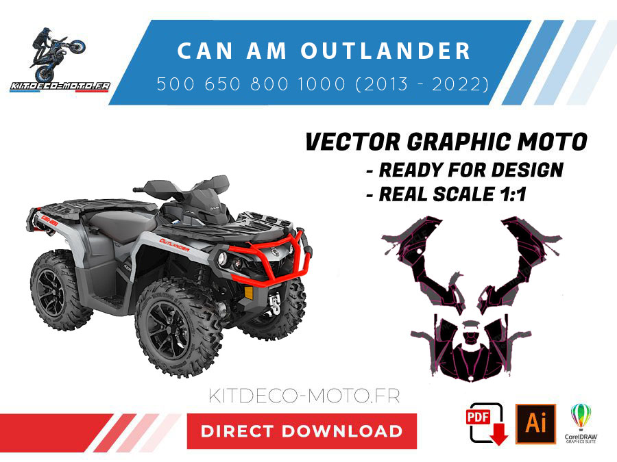 Kitdeco-moto propose le gabarit vectoriel de CAN AM OUTLANDER 500 650 800 1000 de 2013 à 2022. Le fichier est téléchargeable après votre achat directement sur votre compte. Le modèle est mis à l’échelle et il est prêt à être utilisé.