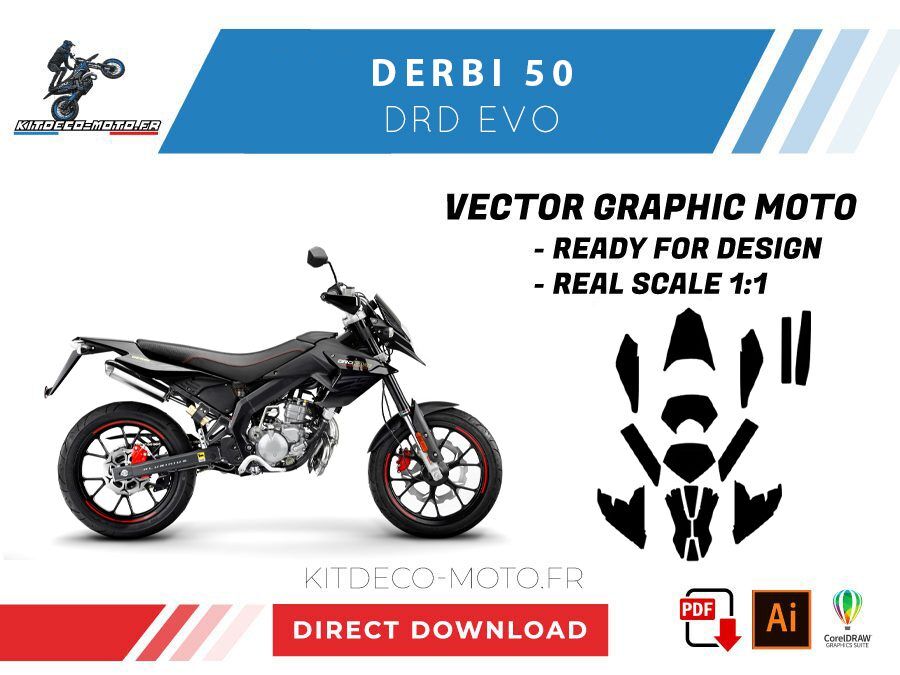 Kitdeco-moto propose le gabarit vectoriel de Derbi 50 DRD Evo. Le fichier est téléchargeable après votre achat directement sur votre compte. Le modèle est mis à l’échelle et il est prêt à être utilisé.
