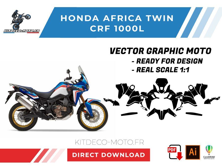 Kitdeco-moto propose le gabarit vectoriel de Honda AFRICA TWIN CRF 1000L. Le fichier est téléchargeable après votre achat directement sur votre compte. Le modèle est mis à l’échelle et il est prêt à être utilisé.