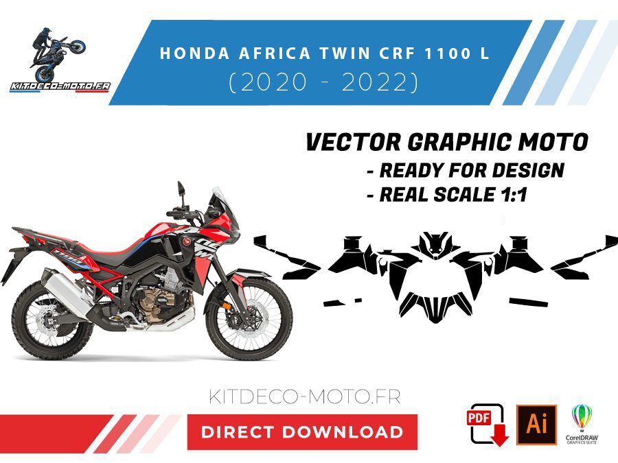 Kitdeco-moto propose le gabarit vectoriel de Honda AFRICA TWIN CRF 1100L de 2020, 2021 et 2022. Le fichier est téléchargeable après votre achat directement sur votre compte. Le modèle est mis à l’échelle et il est prêt à être utilisé.