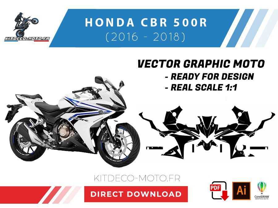 Kitdeco-moto propose le gabarit vectoriel de Honda CBR 500R de 2016 à 2018. Le fichier est téléchargeable après votre achat directement sur votre compte. Le modèle est mis à l’échelle et il est prêt à être utilisé.