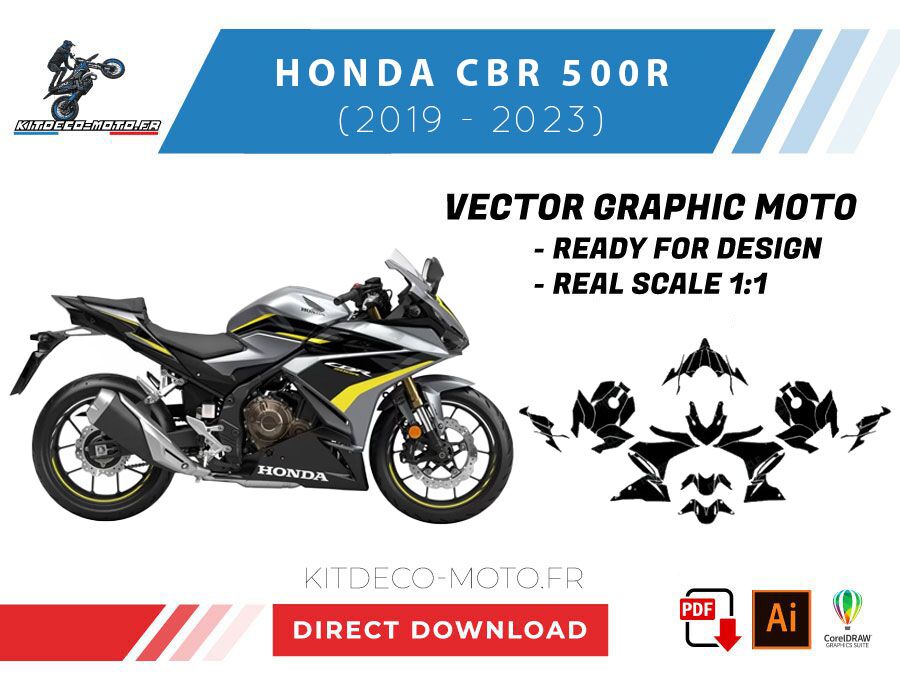 Kitdeco-moto propose le gabarit vectoriel de Honda CBR 500R de 2019 à 2023. Le fichier est téléchargeable après votre achat directement sur votre compte. Le modèle est mis à l’échelle et il est prêt à être utilisé.