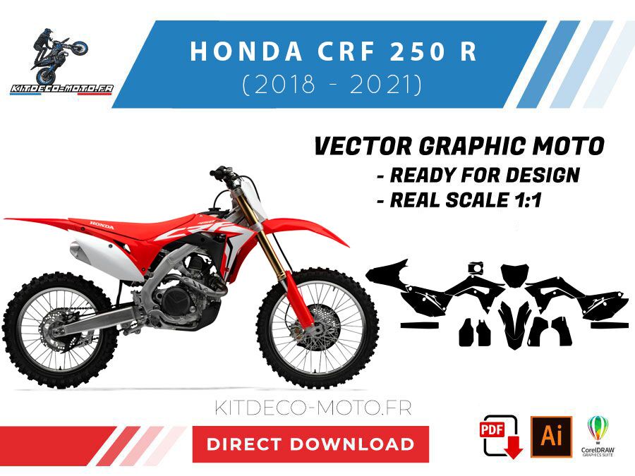 Kitdeco-moto propose le gabarit vectoriel de Honda CRF 250 R de 2018 à 2021. Le fichier est téléchargeable après votre achat directement sur votre compte. Le modèle est mis à l’échelle et il est prêt à être utilisé.
