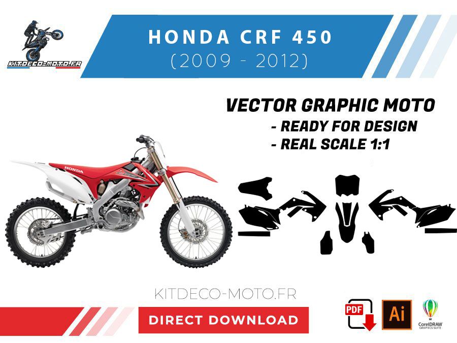 Kitdeco-moto propose le gabarit vectoriel de Honda CRF 450 de 2009 à 2012. Le fichier est téléchargeable après votre achat directement sur votre compte. Le modèle est mis à l’échelle et il est prêt à être utilisé.