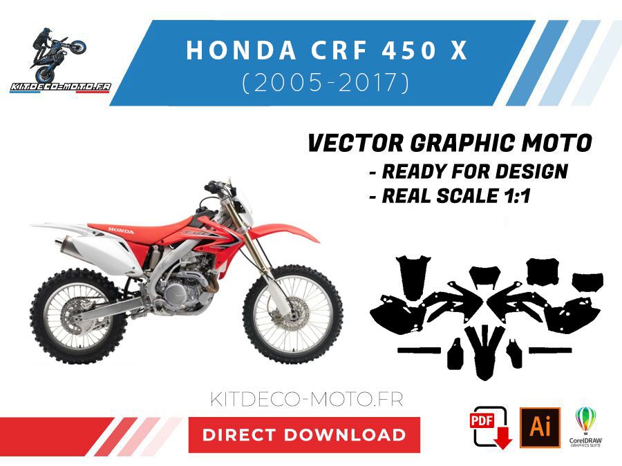 Kitdeco-moto propose le gabarit vectoriel de Honda CRF 450X de 2005 à 2017. Le fichier est téléchargeable après votre achat directement sur votre compte. Le modèle est mis à l’échelle et il est prêt à être utilisé.