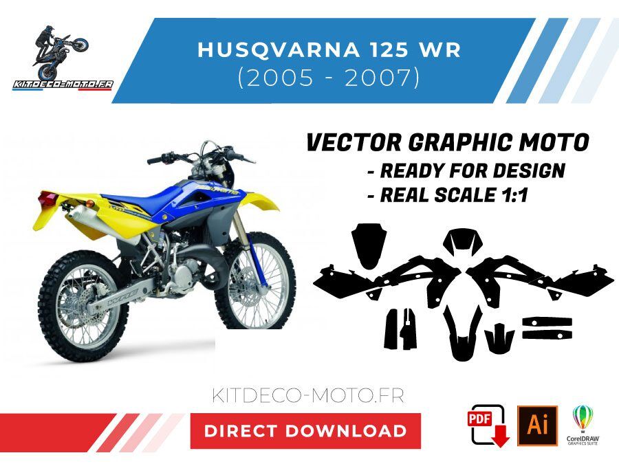 Kitdeco-moto propose le gabarit vectoriel de Husqvarna 125 WR de 2005 à 2007. Le fichier est téléchargeable après votre achat directement sur votre compte. Le modèle est mis à l’échelle et il est prêt à être utilisé.