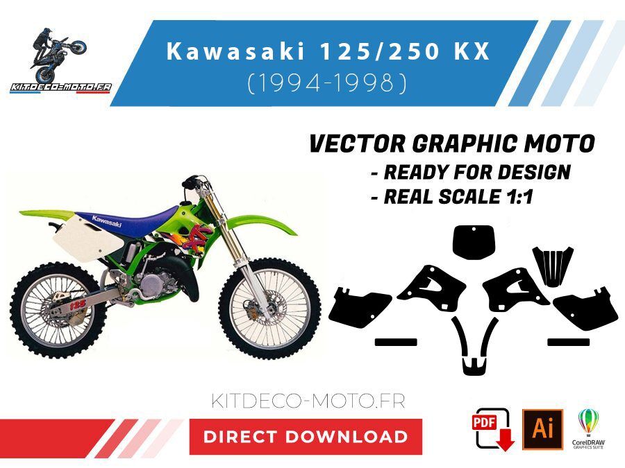 Kitdeco-moto propose le gabarit vectoriel de Kawasaki 125-250 KX de 1994 à 1998. Le fichier est téléchargeable après votre achat directement sur votre compte. Le modèle est mis à l’échelle et il est prêt à être utilisé.