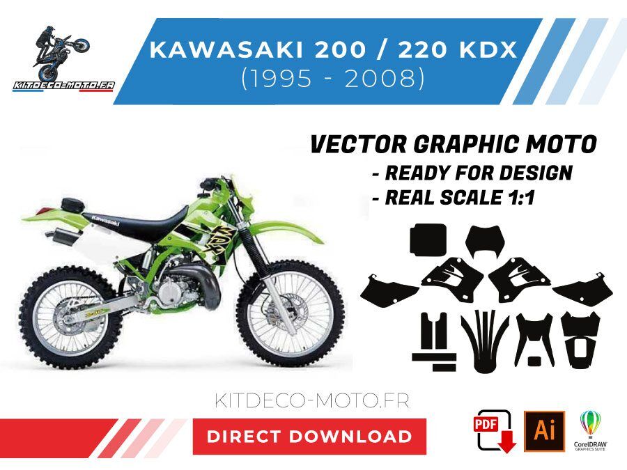 Kitdeco-moto propose le gabarit vectoriel de Kawasaki 200 / 220 KDX de 1995 à 2008. Le fichier est téléchargeable après votre achat directement sur votre compte. Le modèle est mis à l’échelle et il est prêt à être utilisé.