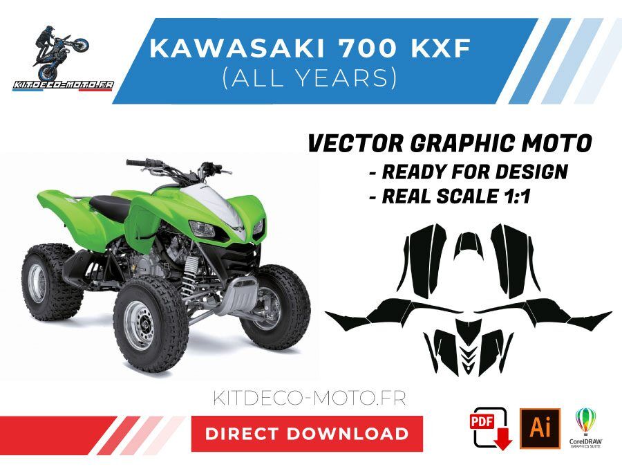Kitdeco-moto propose le gabarit vectoriel de Kawasaki 700 KFX. Le fichier est téléchargeable après votre achat directement sur votre compte. Le modèle est mis à l’échelle et il est prêt à être utilisé.