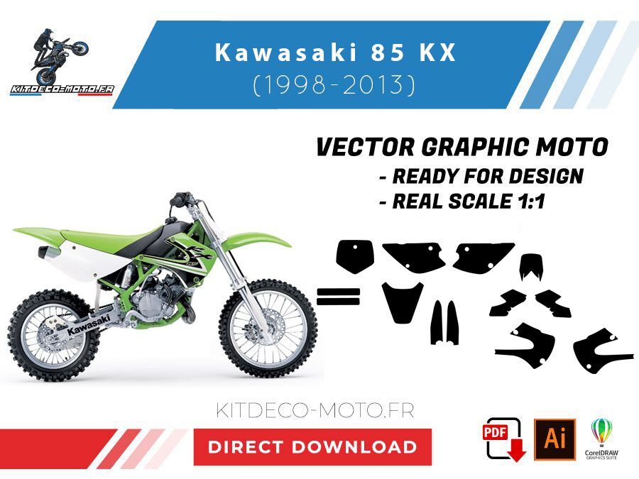 Kitdeco-moto propose le gabarit vectoriel de Kawasaki 85 KX de 1998 à 2013. Le fichier est téléchargeable après votre achat directement sur votre compte. Le modèle est mis à l’échelle et il est prêt à être utilisé.
