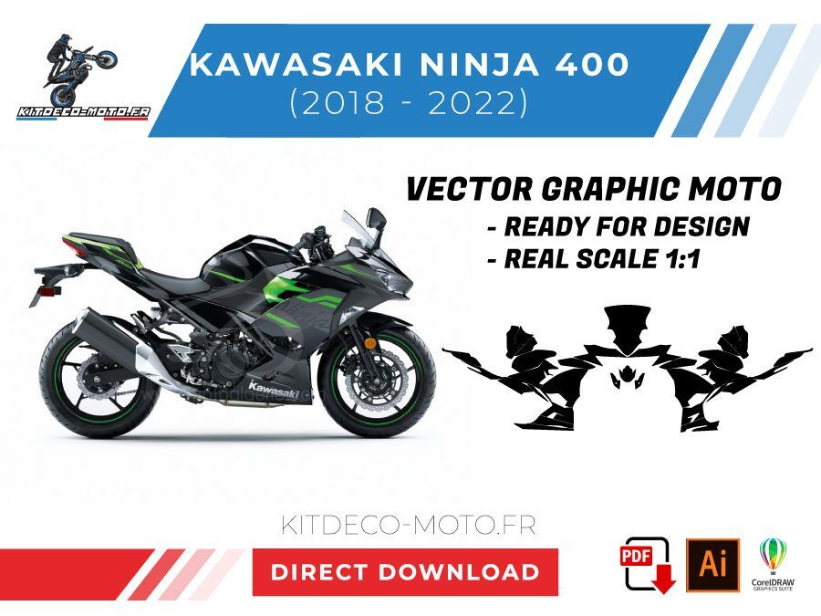 Kitdeco-moto propose le gabarit vectoriel de Kawasaki Ninja 400 de 2017, 2018, 2019, 2020, 2021 et 2022. Le fichier est téléchargeable après votre achat directement sur votre compte. Le modèle est mis à l’échelle et il est prêt à être utilisé.