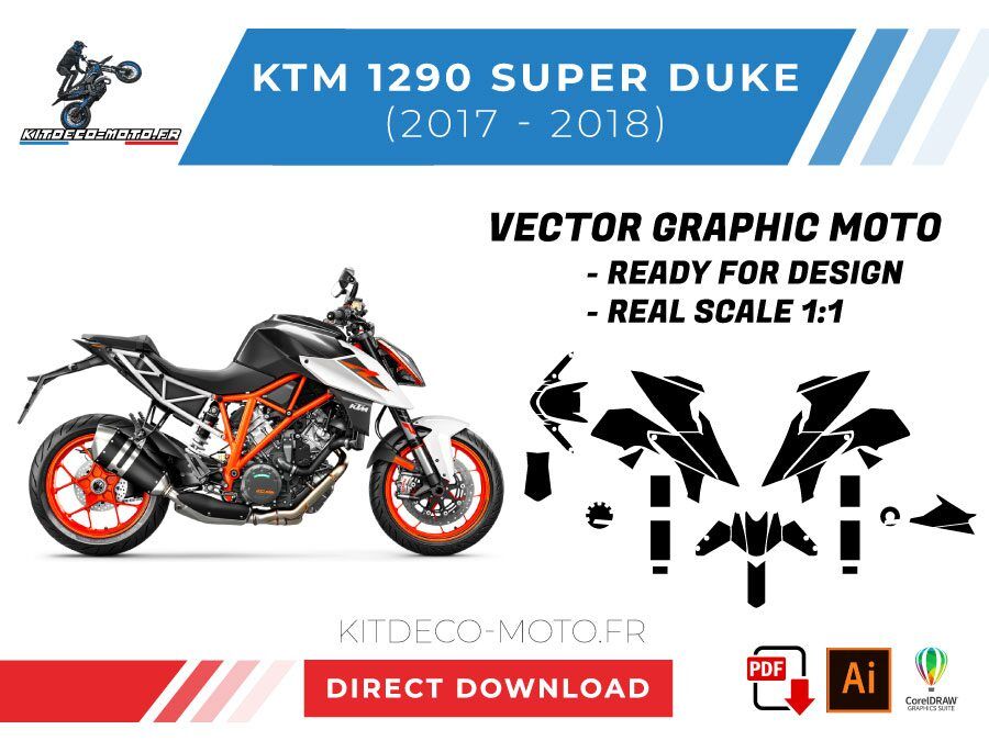 Kitdeco-moto propose le gabarit vectoriel de KTM 1290 Super Duke de 2017, 2018 et 2019. Le fichier est téléchargeable après votre achat directement sur votre compte. Le modèle est mis à l’échelle et il est prêt à être utilisé.