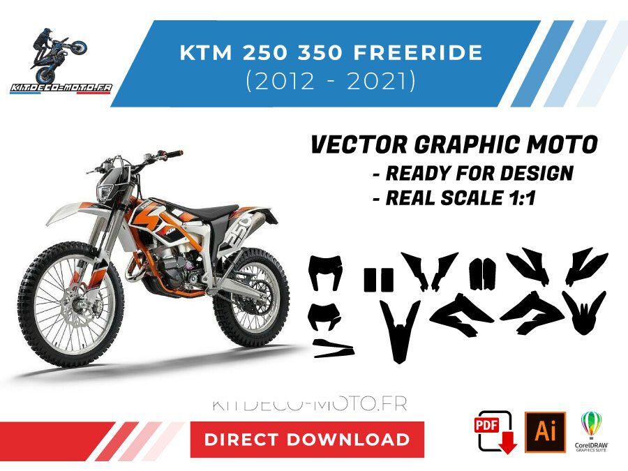 Kitdeco-moto propose le gabarit vectoriel de KTM 250 / 350 FREERIDE de 2012 à 2021. Le fichier est téléchargeable après votre achat directement sur votre compte. Le modèle est mis à l’échelle et il est prêt à être utilisé.