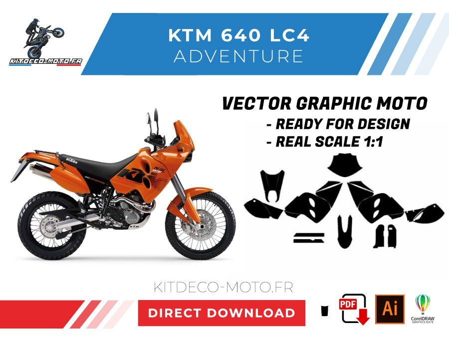 Kitdeco-moto propose le gabarit vectoriel de KTM 640 LC4 Adventure. Le fichier est téléchargeable après votre achat directement sur votre compte. Le modèle est mis à l’échelle et il est prêt à être utilisé.