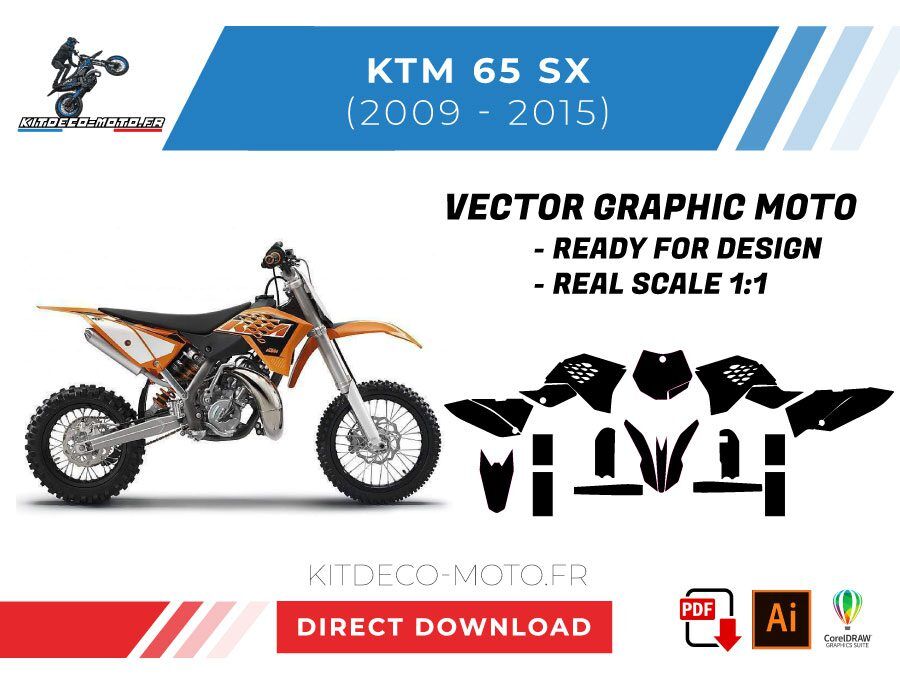 Kitdeco-moto propose le gabarit vectoriel de KTM 65 SX de 2009, 2010, 2011, 2012, 2013, 2014 et 2015. Le fichier est téléchargeable après votre achat directement sur votre compte. Le modèle est mis à l’échelle et il est prêt à être utilisé.