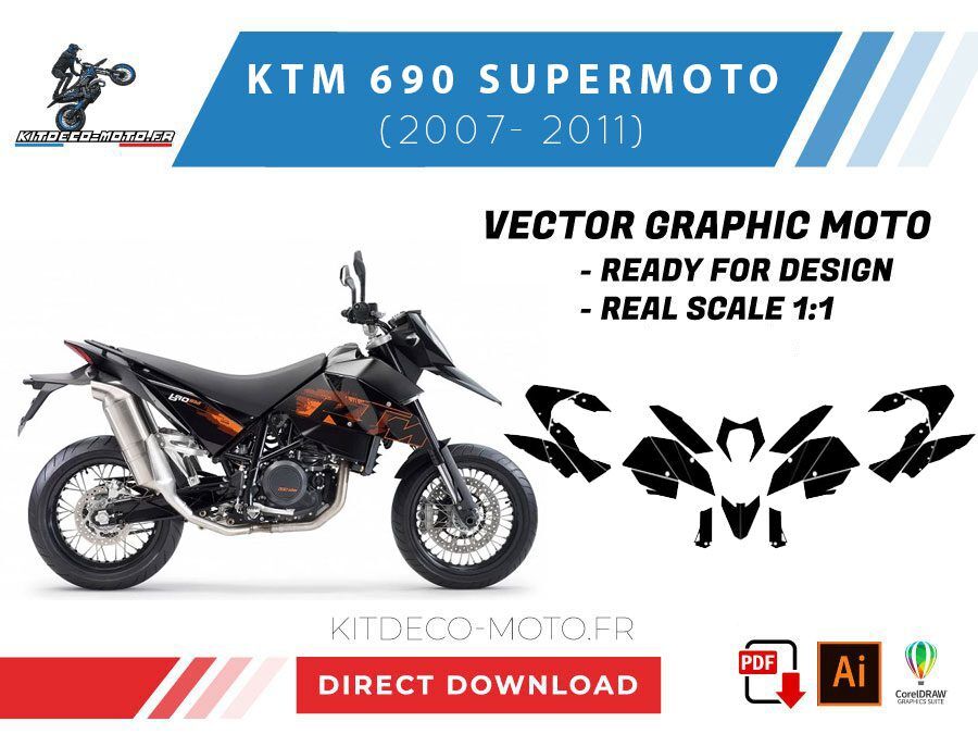Kitdeco-moto propose le gabarit vectoriel de KTM 690 Supermoto de 2007 à 2011. Le fichier est téléchargeable après votre achat directement sur votre compte. Le modèle est mis à l’échelle et il est prêt à être utilisé.