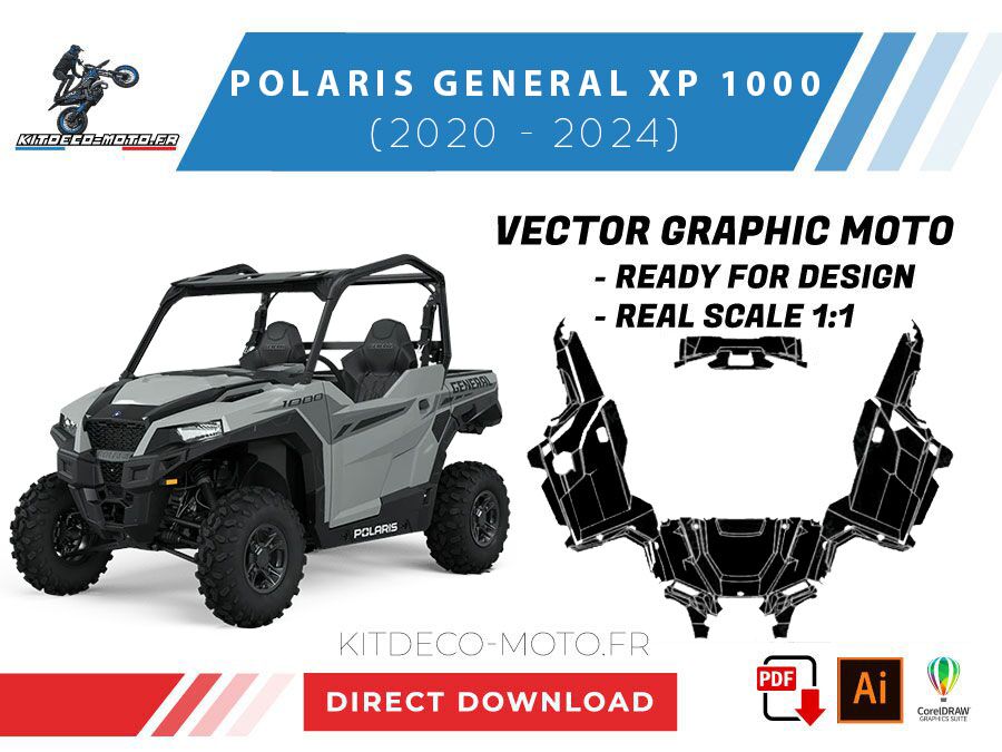 Kitdeco-moto propose le gabarit vectoriel de Polaris General XP 1000 de 2020 à 2024. Le fichier est téléchargeable après votre achat directement sur votre compte. Le modèle est mis à l’échelle et il est prêt à être utilisé.