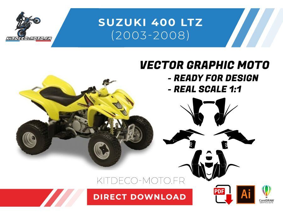 Kitdeco-moto propose le gabarit vectoriel de Suzuki 400 LTZ de 2003, 2004, 2005, 2006, 2007 et 2008. Le fichier est téléchargeable après votre achat directement sur votre compte. Le modèle est mis à l’échelle et il est prêt à être utilisé.