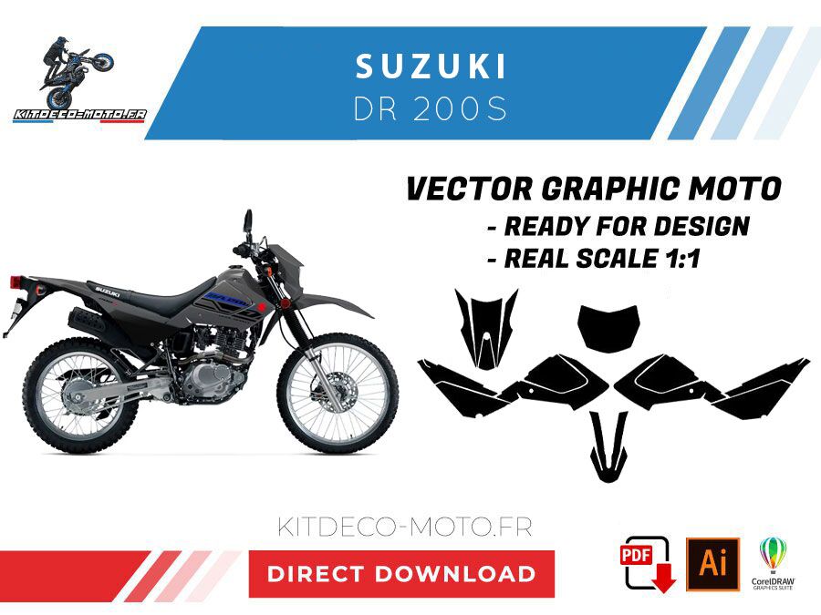 Kitdeco-moto propose le gabarit vectoriel de Suzuki DR 200S. Le fichier est téléchargeable après votre achat directement sur votre compte. Le modèle est mis à l’échelle et il est prêt à être utilisé.