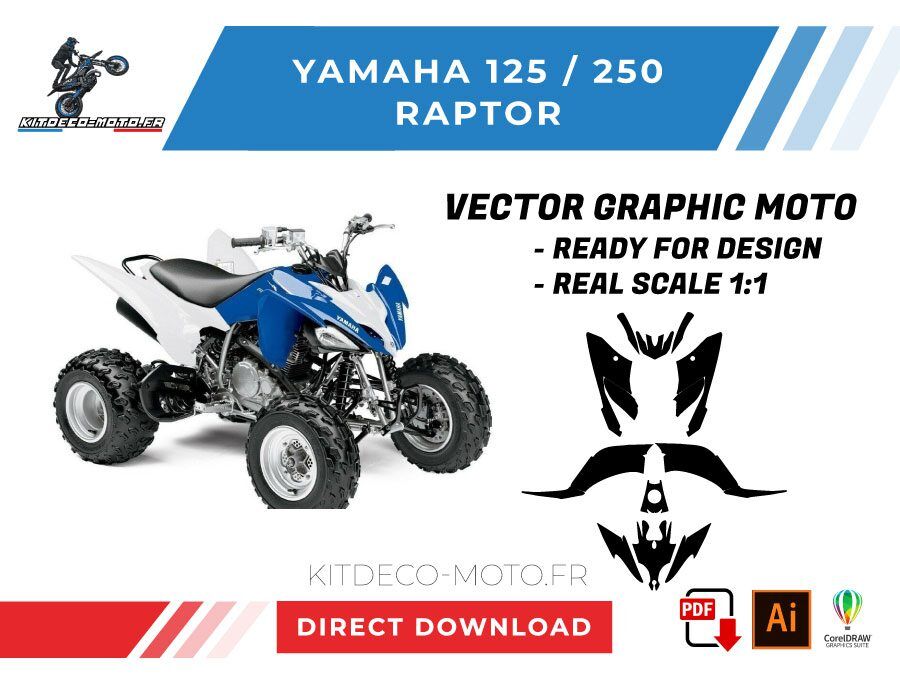 Kitdeco-moto propose le gabarit vectoriel de Yamaha 125 et 250 Raptor. Le fichier est téléchargeable après votre achat directement sur votre compte. Le modèle est mis à l’échelle et il est prêt à être utilisé.