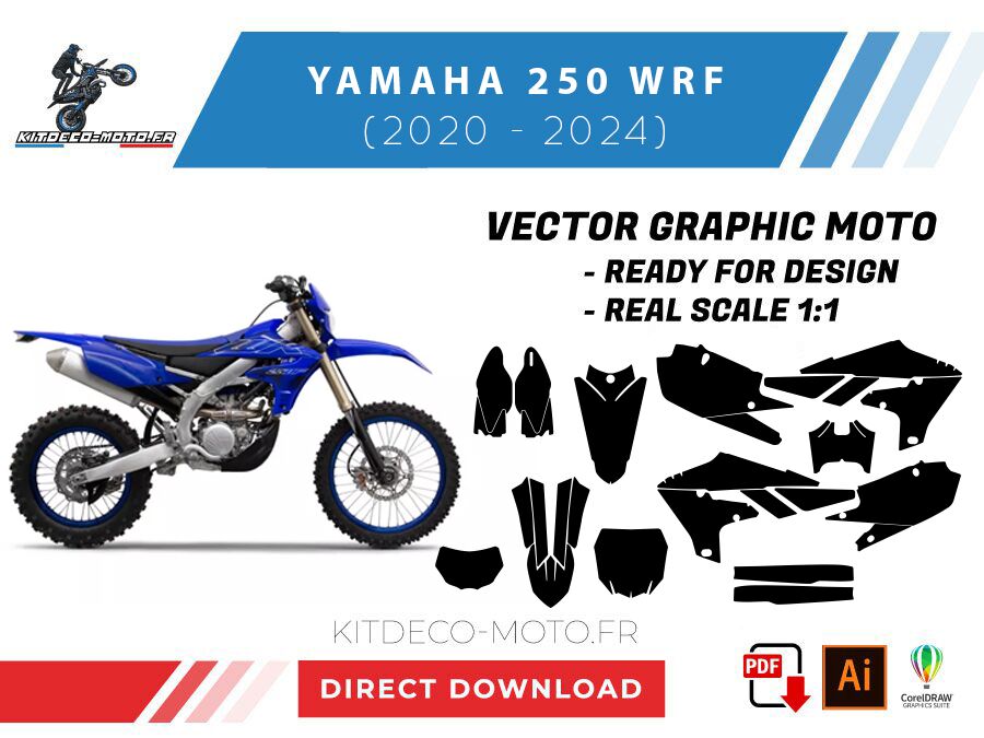 Kitdeco-moto propose le gabarit vectoriel de Yamaha 250 WRF de 2020, 2021, 2022, 2023 et 2024. Le fichier est téléchargeable après votre achat directement sur votre compte. Le modèle est mis à l’échelle et il est prêt à être utilisé.