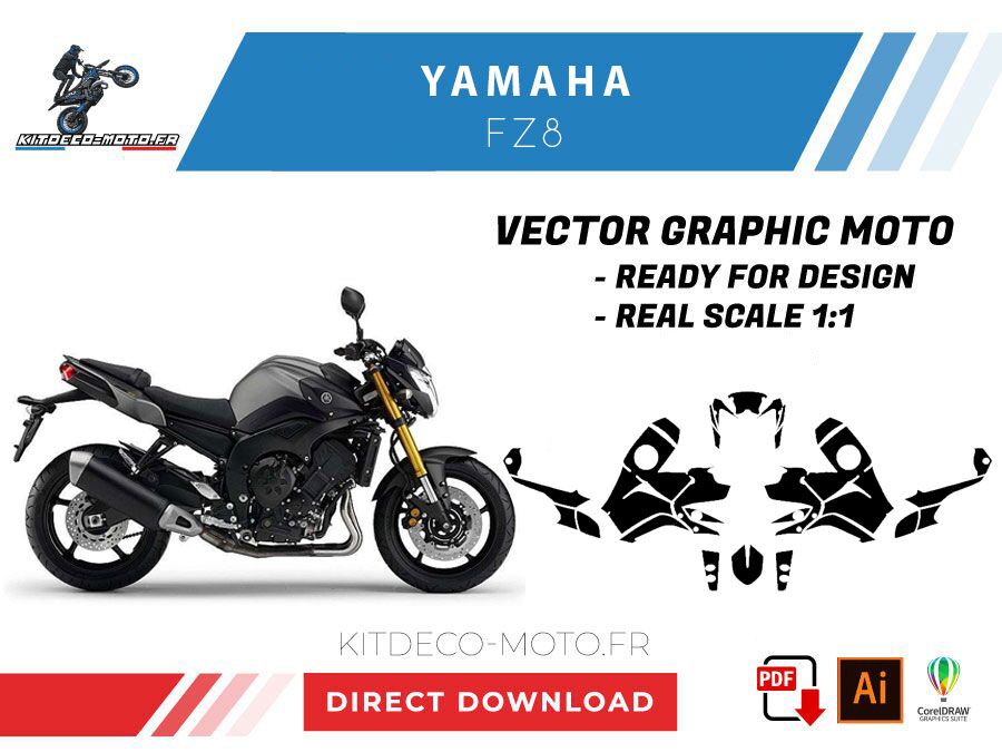 Kitdeco-moto propose le gabarit vectoriel de Yamaha FZ8. Le fichier est téléchargeable après votre achat directement sur votre compte. Le modèle est mis à l’échelle et il est prêt à être utilisé.