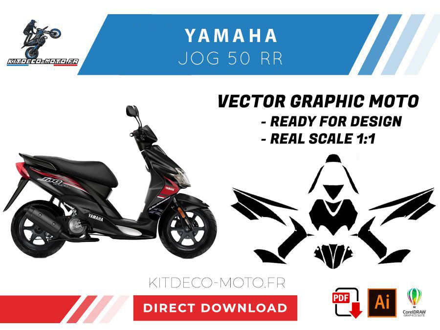 Kitdeco-moto propose le gabarit vectoriel de Yamaha JOG 50 RR. Le fichier est téléchargeable après votre achat directement sur votre compte. Le modèle est mis à l’échelle et il est prêt à être utilisé.