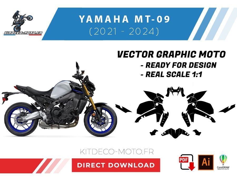Kitdeco-moto propose le gabarit vectoriel de Yamaha MT-09 de 2021, 2022, 2023 et 2024. Le fichier est téléchargeable après votre achat directement sur votre compte. Le modèle est mis à l’échelle et il est prêt à être utilisé.