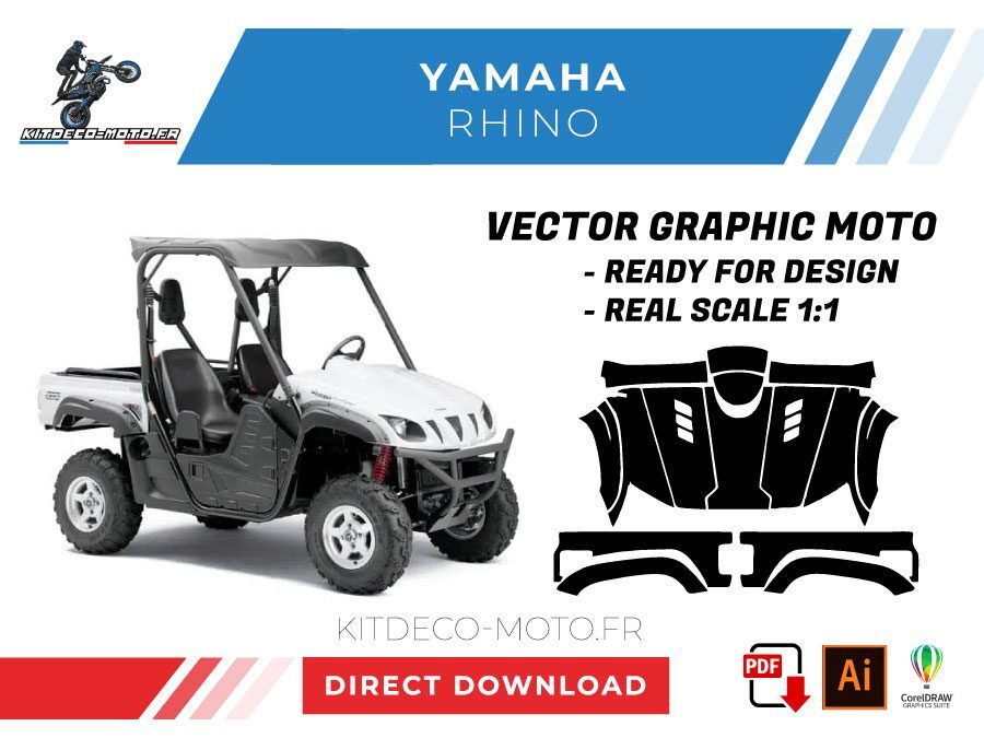 Kitdeco-moto propose le gabarit vectoriel de Yamaha Rhino. Le fichier est téléchargeable après votre achat directement sur votre compte. Le modèle est mis à l’échelle et il est prêt à être utilisé.