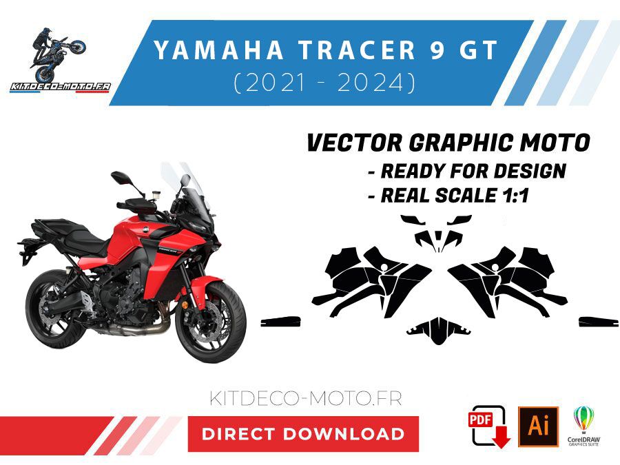 Kitdeco-moto propose le gabarit vectoriel de Yamaha Tracer 9 GT de 2021 à 2024. Le fichier est téléchargeable après votre achat directement sur votre compte. Le modèle est mis à l’échelle et il est prêt à être utilisé.
