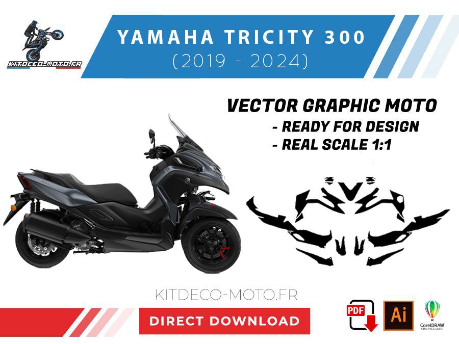 Kitdeco-moto propose le gabarit vectoriel de Yamaha TRICITY 300 de 2019 à 2024. Le fichier est téléchargeable après votre achat directement sur votre compte. Le modèle est mis à l’échelle et il est prêt à être utilisé.