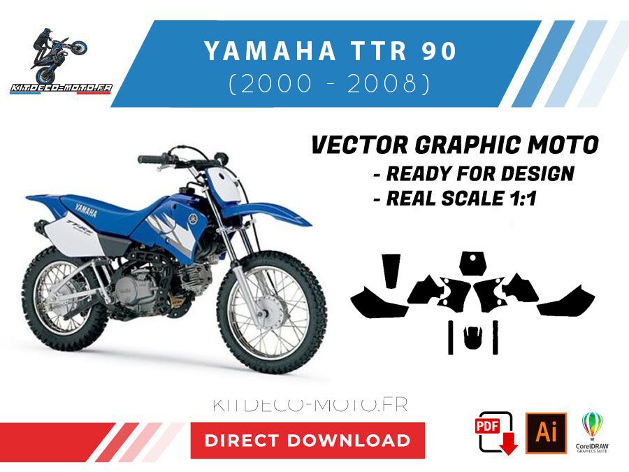 Kitdeco-moto propose le gabarit vectoriel de Yamaha TTR 90 de 2000 à 2008. Le fichier est téléchargeable après votre achat directement sur votre compte. Le modèle est mis à l’échelle et il est prêt à être utilisé.